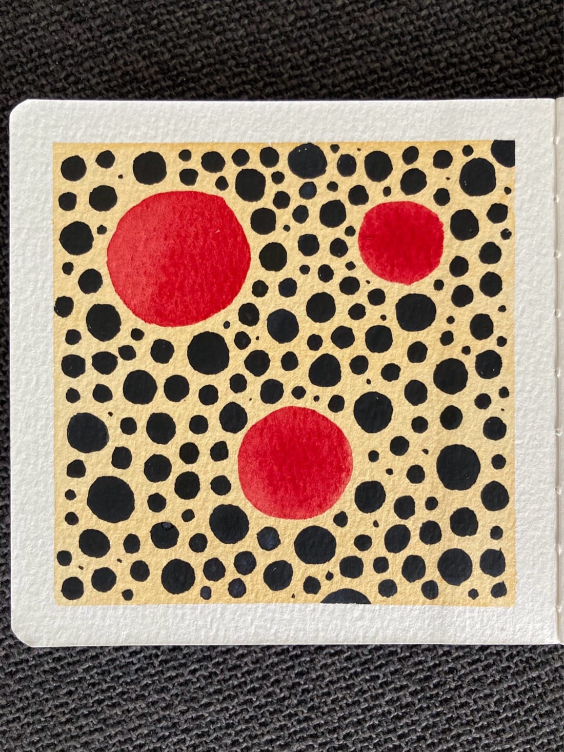 Exercise: Yayoi Kusama inspired circles Paints: Yellow ochre, Payne’s gray, Rose madder