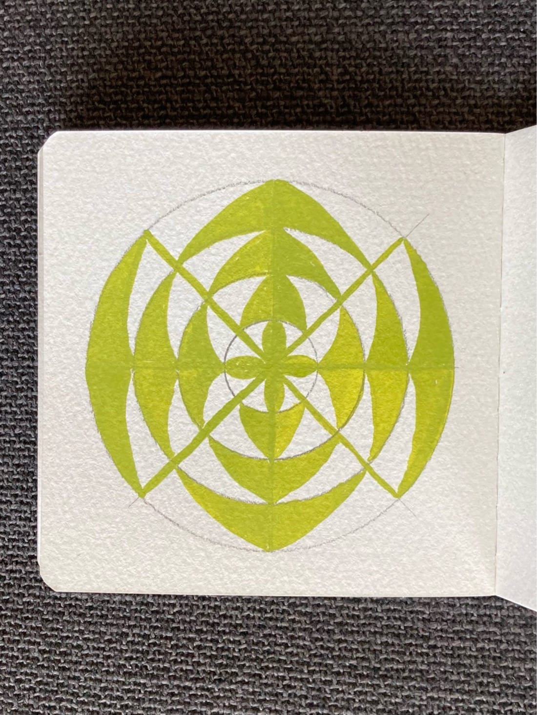 Circular grid exploration in Milkweed (gouache).