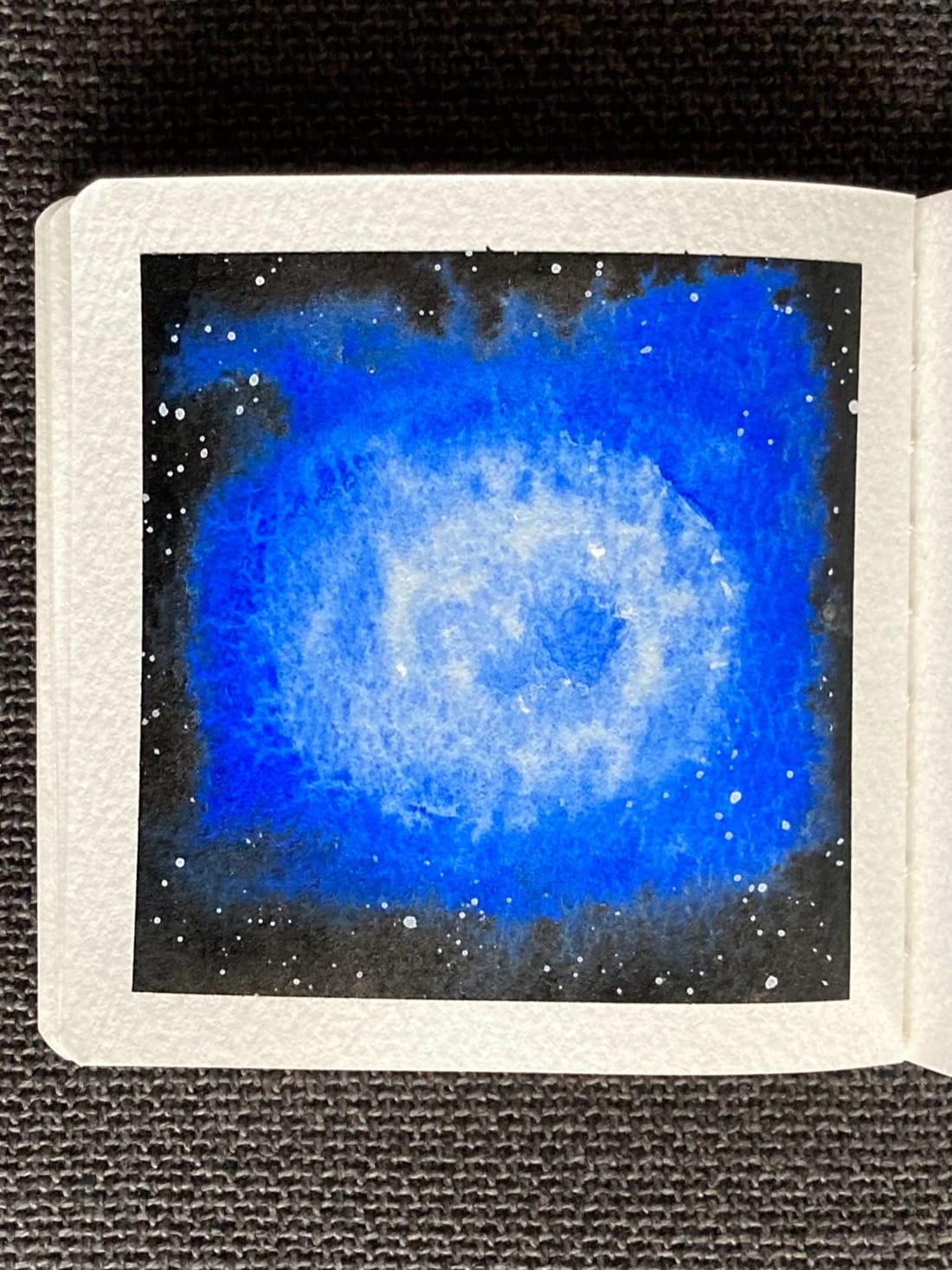Supernova in Cobalt Blue Hue Background: Lamp Black Stars: White gouache