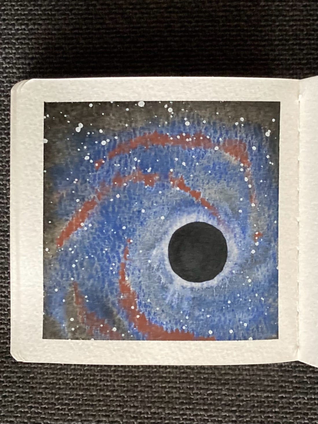 Black hole in Timberwolf and Crimson Ocher Black hole centre: Ivory Black and Paynes Grey Background: Ivory Black Stars: White gouache