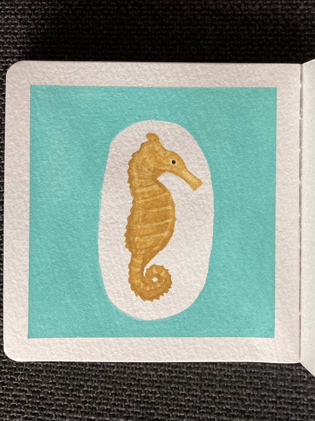 Say hello to Bo, a suspicious seahorse! Paints: Robin’s Egg (gouache), Lemon Ocher
