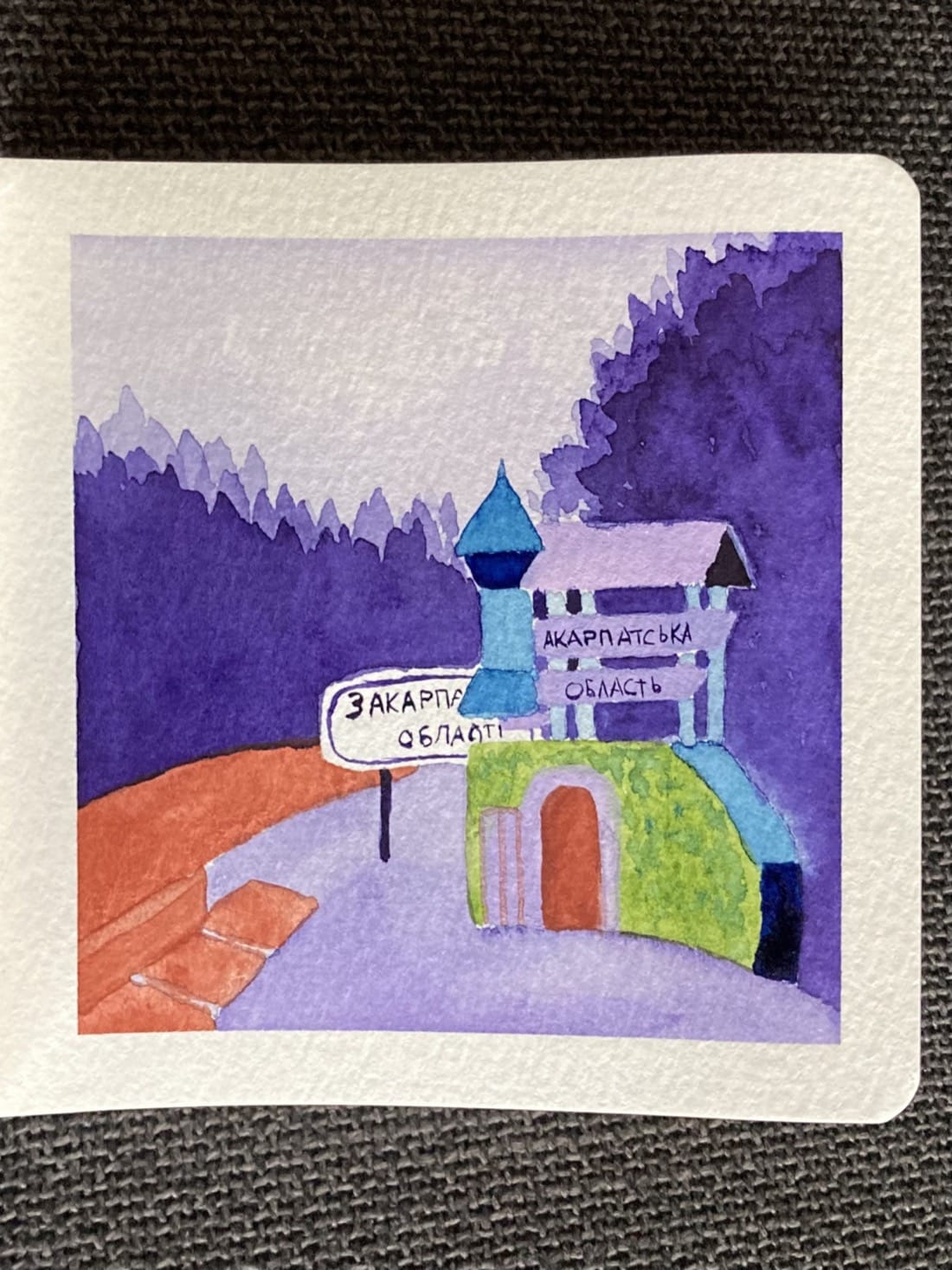 Yablunytsya, Ukraine Paints: Lilac (gouache), Sap Green, Prussian Blue, Venetian Red, Violet