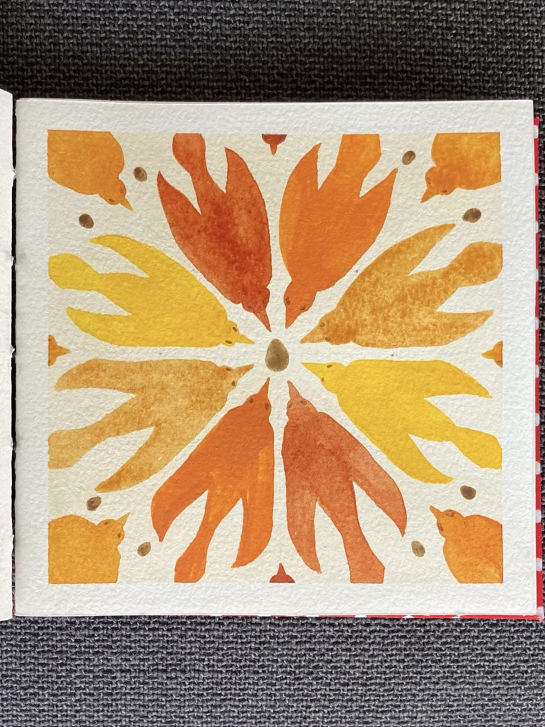 Birds + Repeating Pattern Paints: Burnt Sienna, Cadmium Yellow Hue, Pumpkin, Raw Sienna, Italian Green Umber