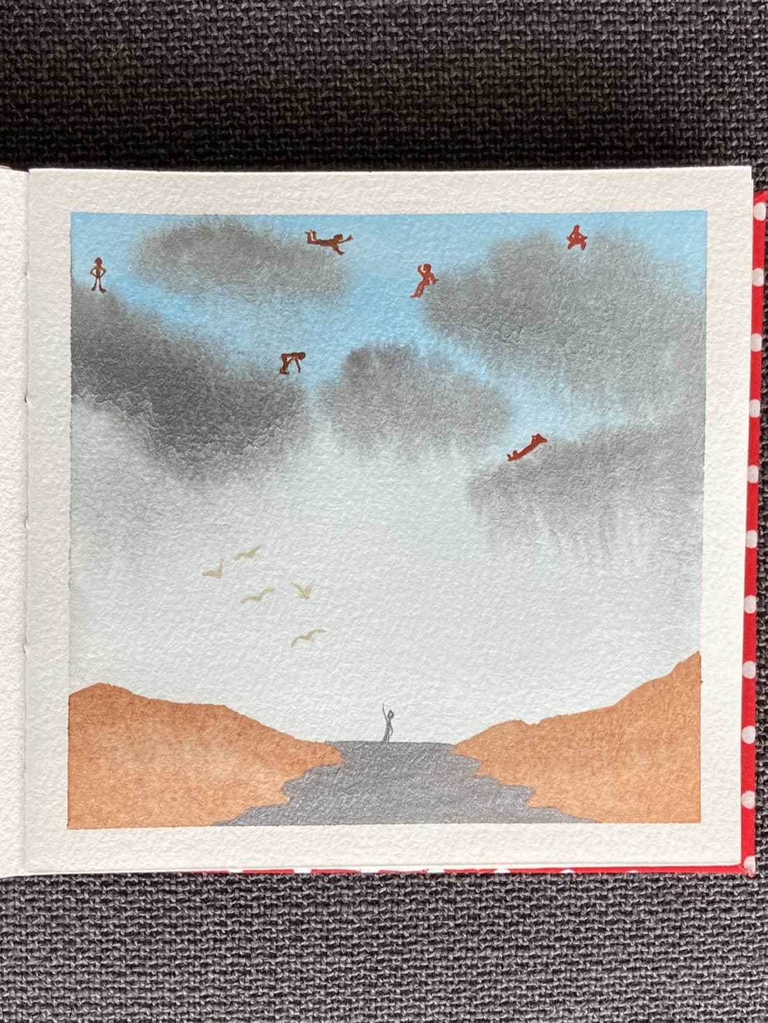 People + Clouds Paints: Orca (mica), Phthalo Blue, Cyprus Burnt Umber Warm, Venetian Red, Cream (gouache)