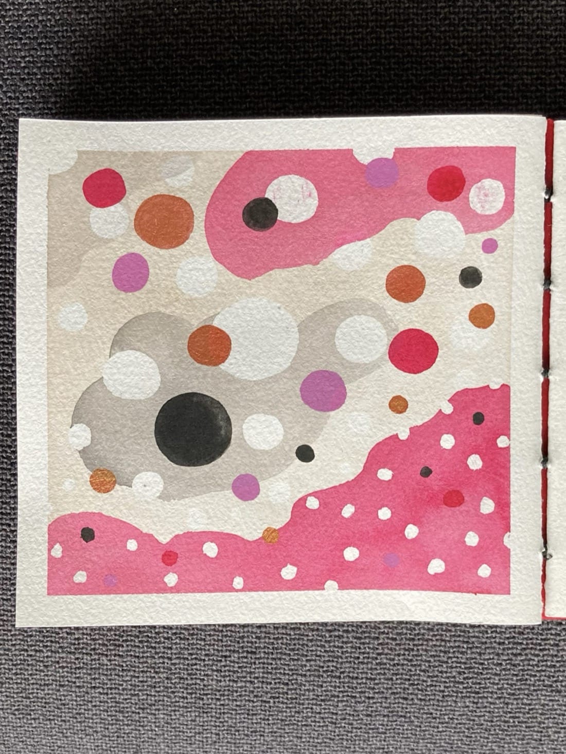 Dots + Blotches Paints: Beach Rose (gouache), Wild Salmon (mica), Nicosia Raw Umber, Quinacridone Red, Carbon Black
