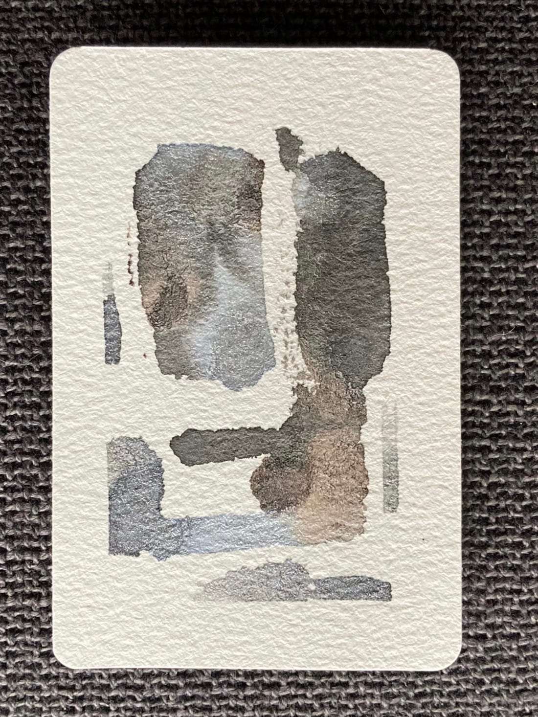 A small abstract watercolour painting. Warm and cool shades of grey in a blocky rectangular configuration.