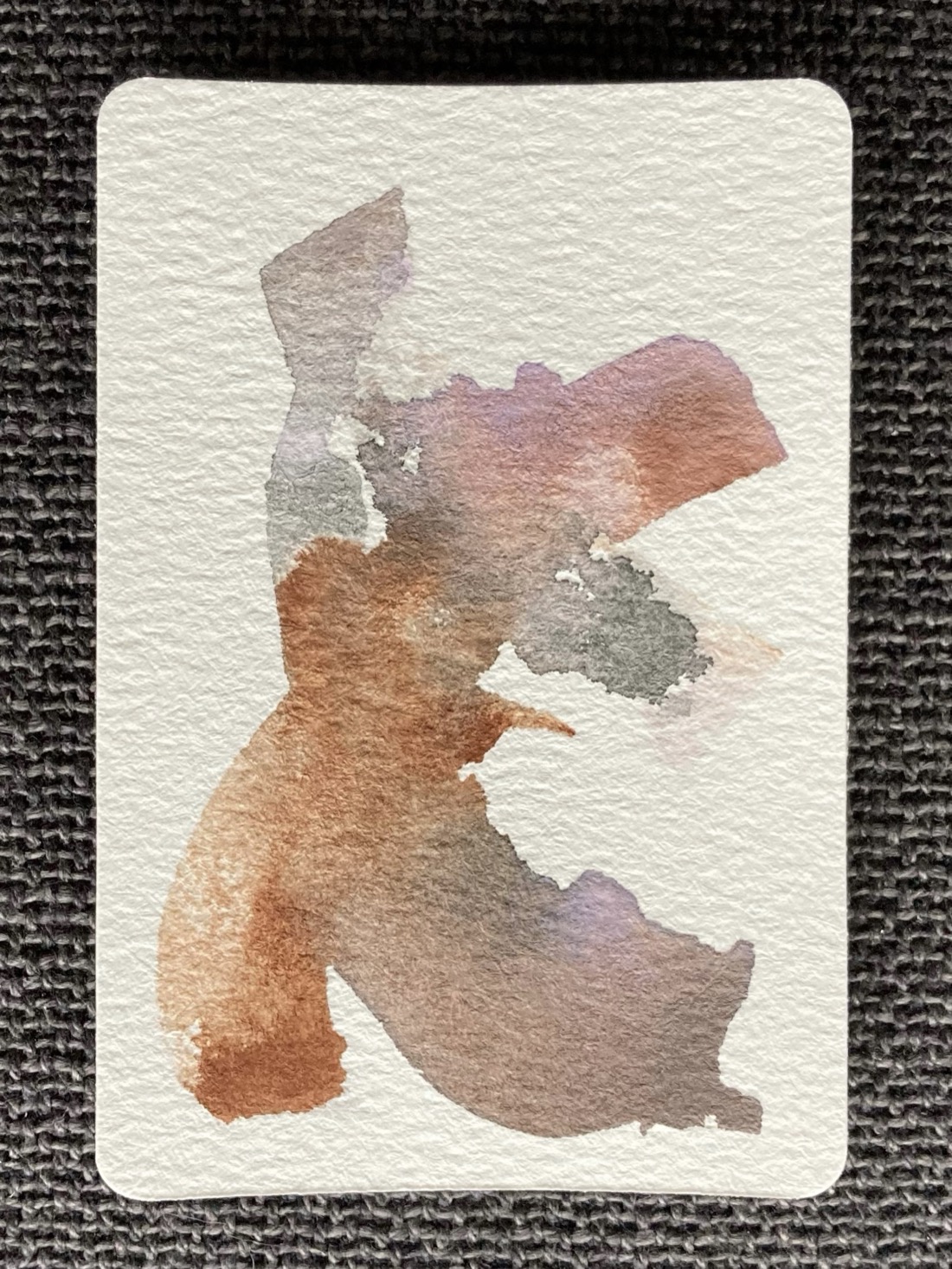 A small abstract watercolour painting. A handful of thick, criss-crossing swipes of paint in warm brown, grey, and pale purple.