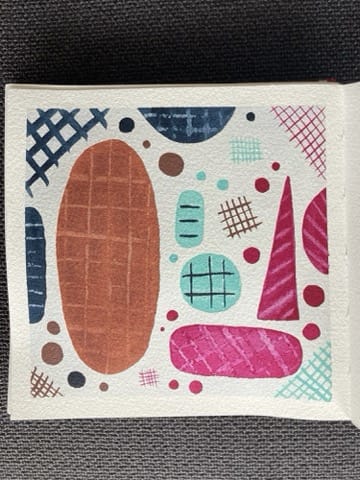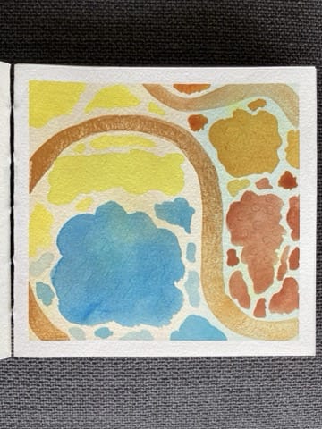 For this project, I explored abstract art in a handmade watercolor sketchbook. I selected random paints and random elements and/or techniques to include in each painting.