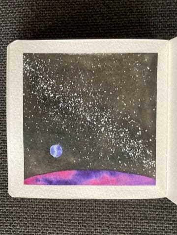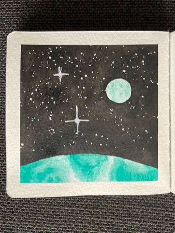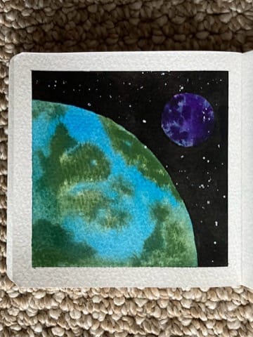 In this project, I practiced wet-on-wet painting by creating paintings with an outer space theme.